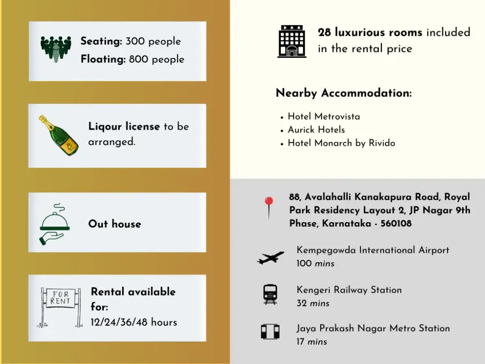 At Meragi, we understand that a wedding isn't just about the aesthetics. It is also about details like venue availability, capacity, accommodation, costs, and so much more. Searching for these details on your own can be tough. That's why, we've compiled all these details in one place for you.