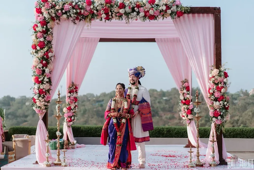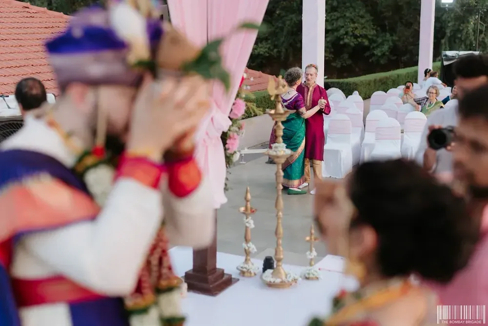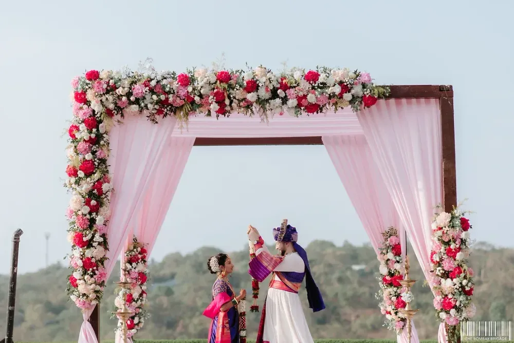The wedding ceremony took place on the open terrace of the Hilton Goa resort