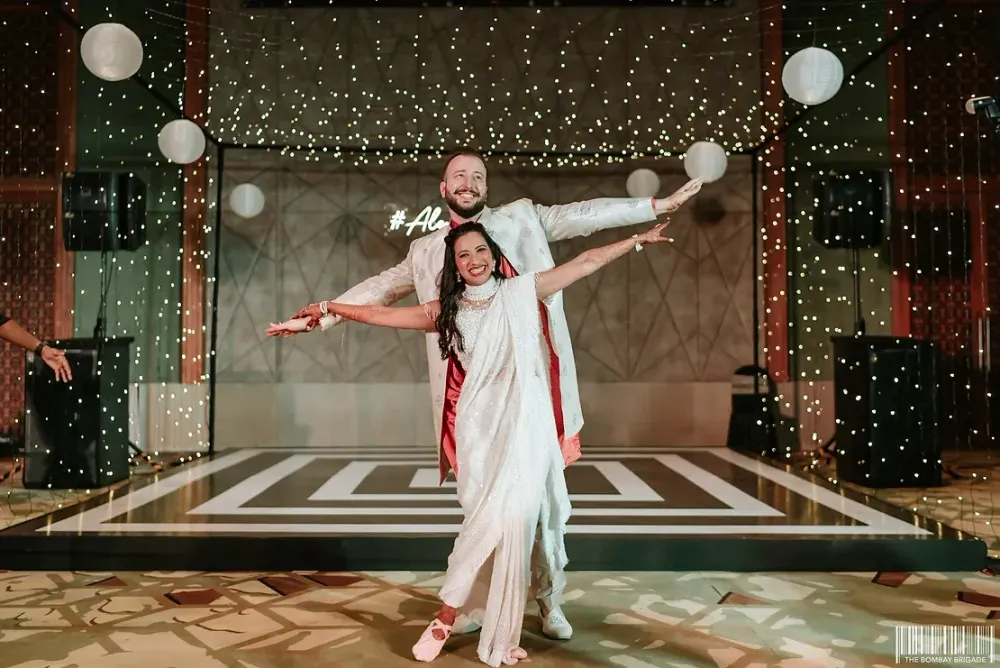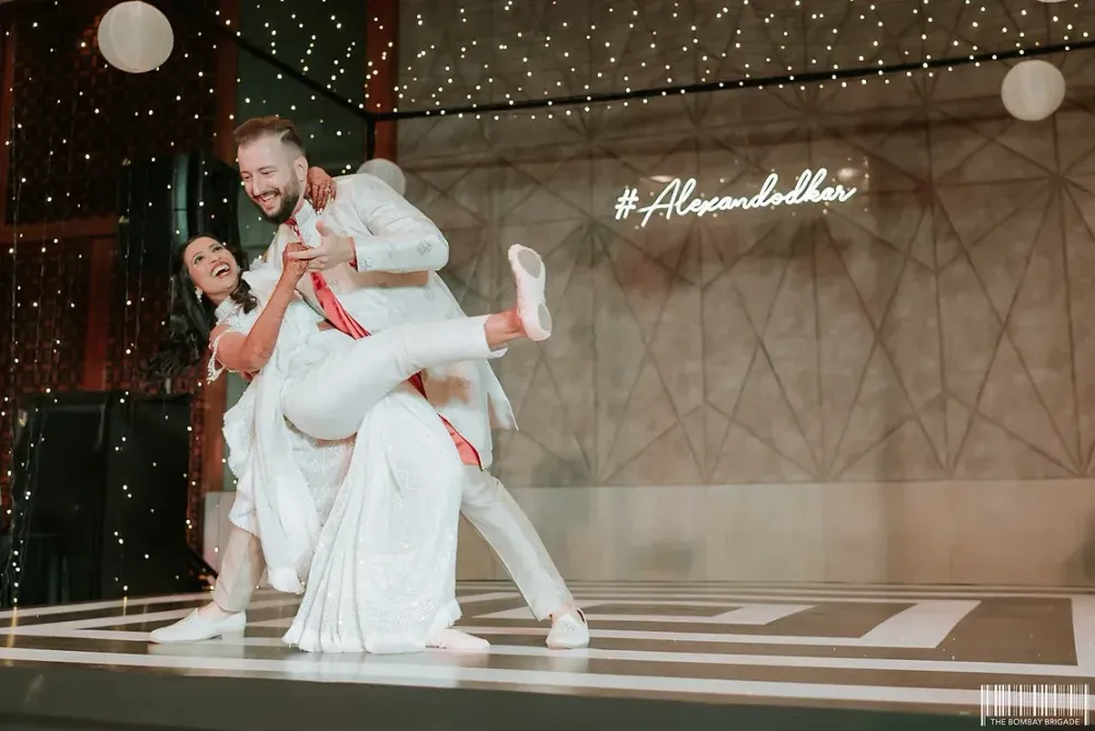 Nick and Priya's wedding hashtag #Alexandodkar glowed on the stage backdrop as the couple stole everyone's heart with their dance skills and cute expressions.
